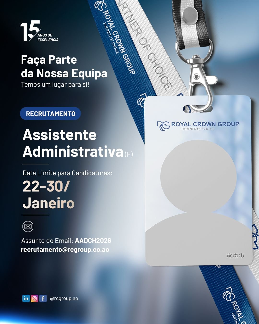 📧 recrutamento@rcgroup.co.ao | Assunto: AADCH2026.
